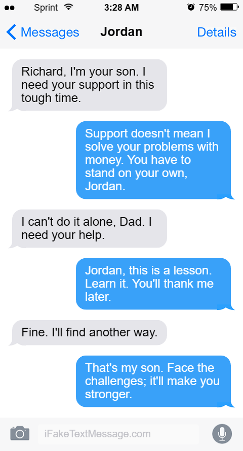 Richard, I'm your son. I need your support in this tough time.