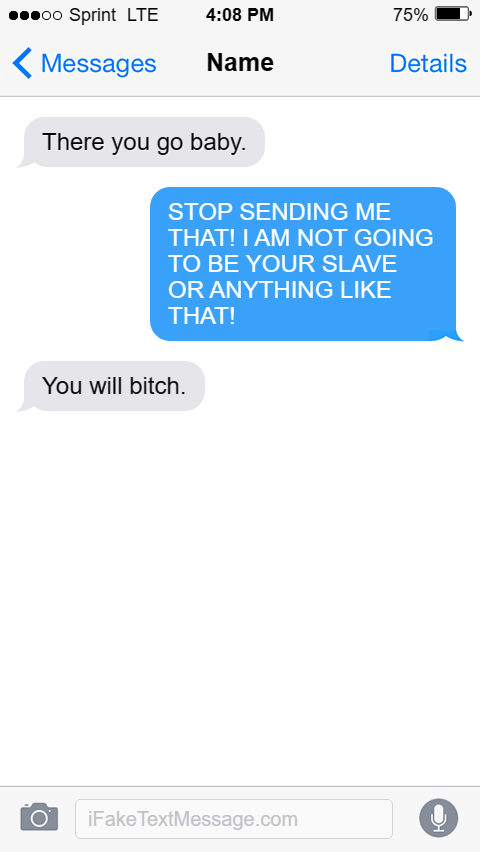 STOP SENDING ME THAT! I AM NOT GOING TO BE YOUR SLAVE OR ANYTHING LIKE THAT!