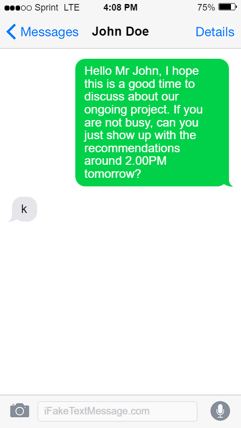 Congratulations! You have created a Fake Text Message! Now you can go and share it with the world: