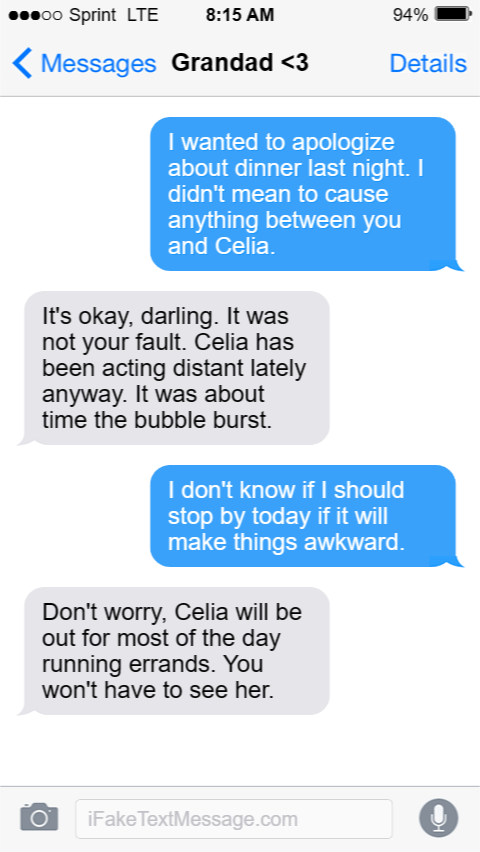 It's okay, darling. It was not your fault. Celia has been acting distant lately anyway. It was about time the bubble burst.