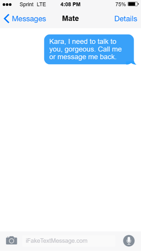 Kara, I need to talk to you, gorgeous. Call me or message me back.