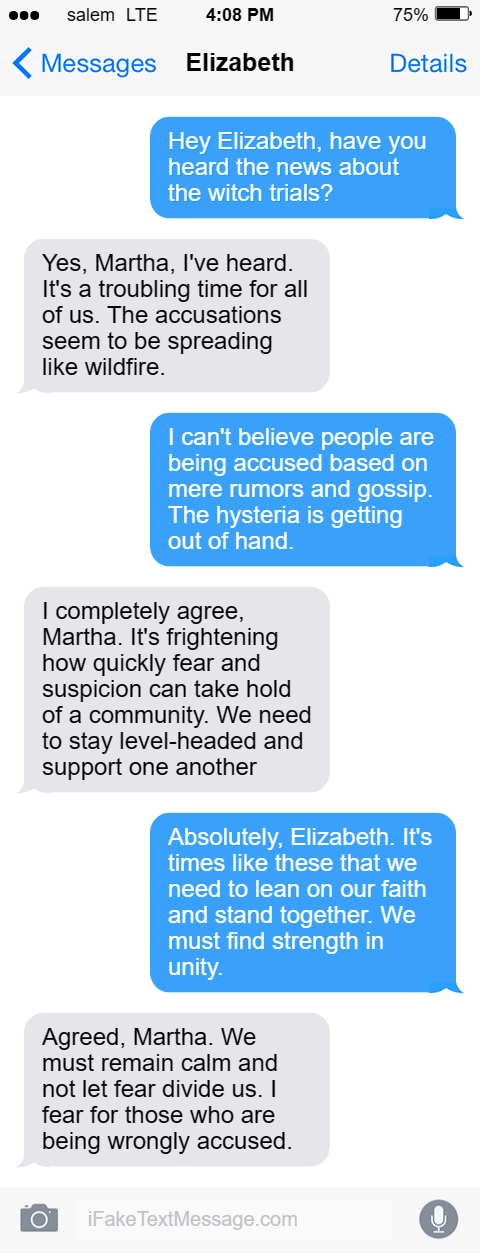 Hey Elizabeth, have you heard the news about the witch trials?