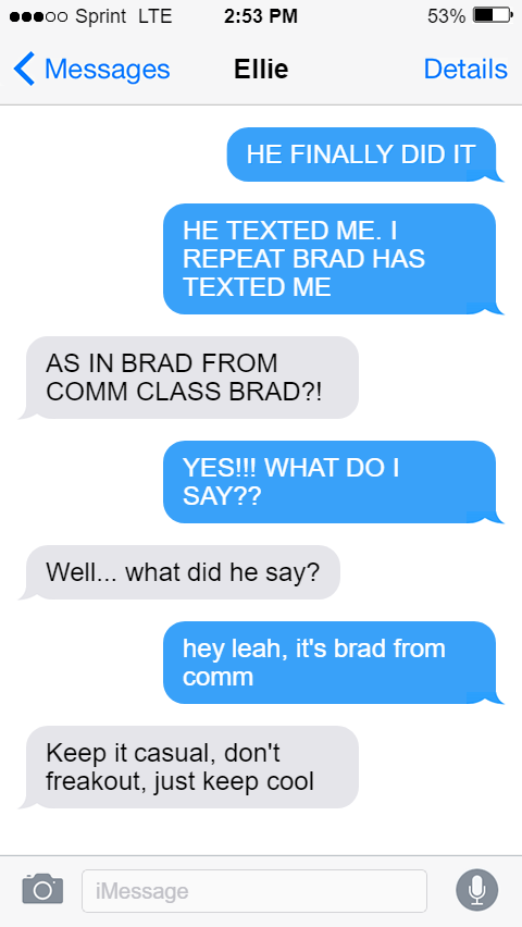 HE TEXTED ME. I REPEAT BRAD HAS TEXTED ME