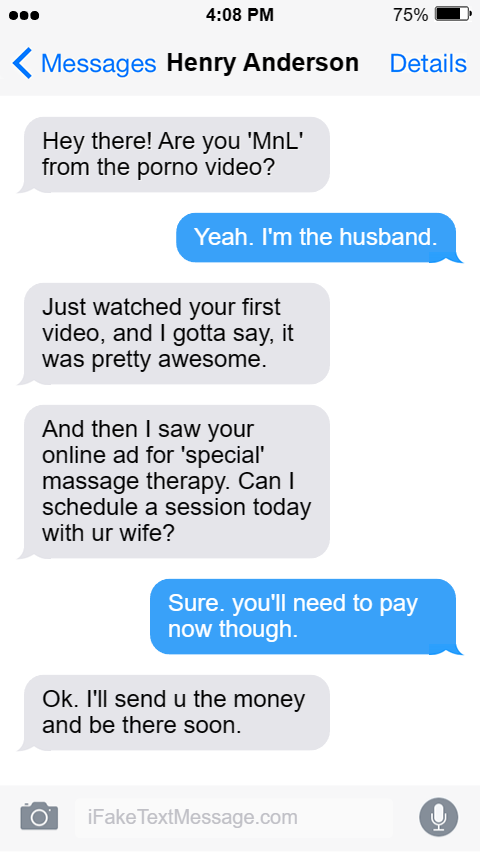 And then I saw your online ad for 'special' ma**age therapy. Can I schedule a session today with ur wife?