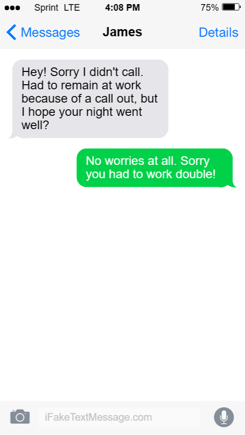 Hey! Sorry I didn't call. Had to remain at work because of a call out, but I hope your night went well?