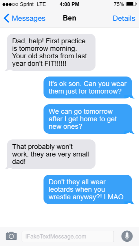 Dad, help! First practice is tomorrow morning. Your old shorts from last year don't FIT!!!!!!