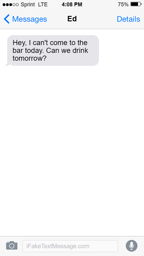 Hey, I can't come to the bar today. Can we drink tomorrow?