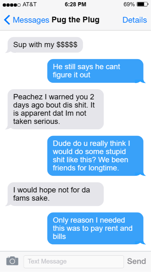 Dude do u really think I would do some stupid s*** like this? We been friends for longtime.