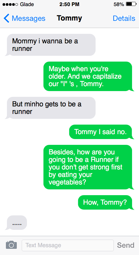 Besides, how are you going to be a Runner if you don't get strong first by eating your vegetables?