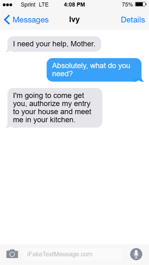 I'm going to come get you, authorize my entry to your house and meet me in your kitchen.