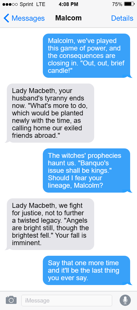 Malcolm, we've played this game of power, and the consequences are closing in. "Out, out, brief candle!"