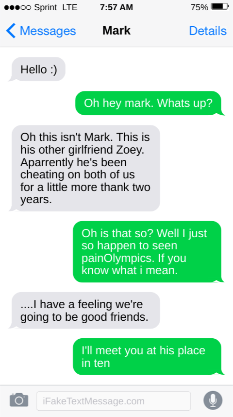 Oh this isn't Mark. This is his other girlfriend Zoey. Aparrently he's been cheating on both of us for a little more thank two years.