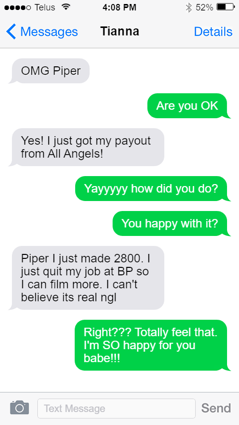 Piper I just made 2800. I just quit my job at BP so I can film more. I can't believe its real ngl