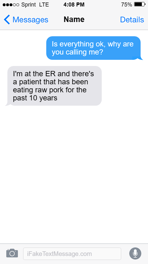 I'm at the ER and there's a patient that has been eating raw pork for the past 10 years