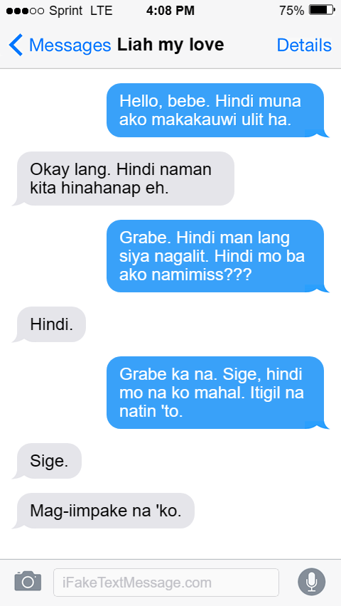 Grabe ka na. Sige, hindi mo na ko mahal. Itigil na natin 'to.