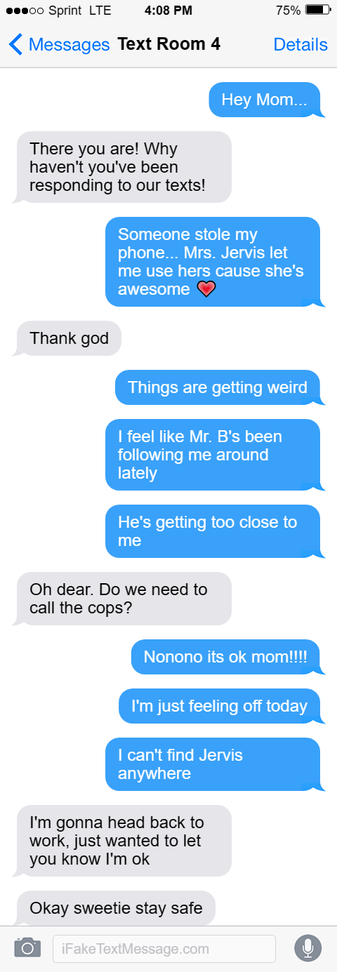Someone stole my phone... Mrs. Jervis let me use hers cause she's awesome