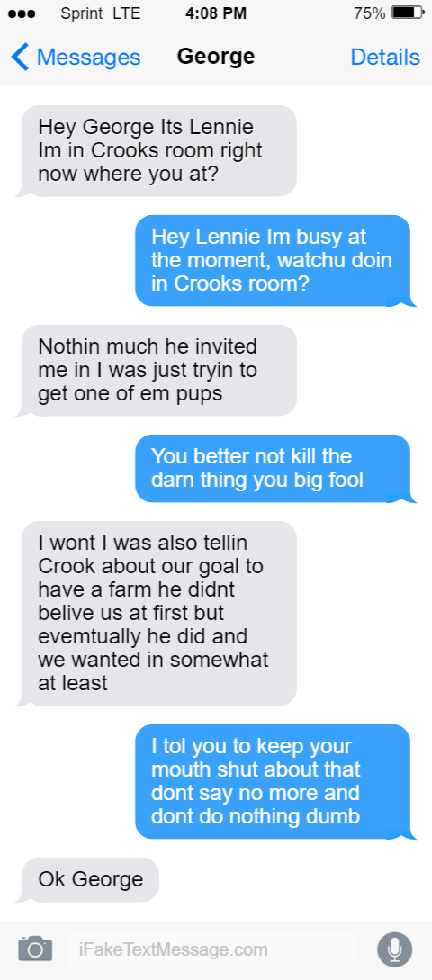 Hey Lennie Im busy at the moment, watchu doin in Crooks room?