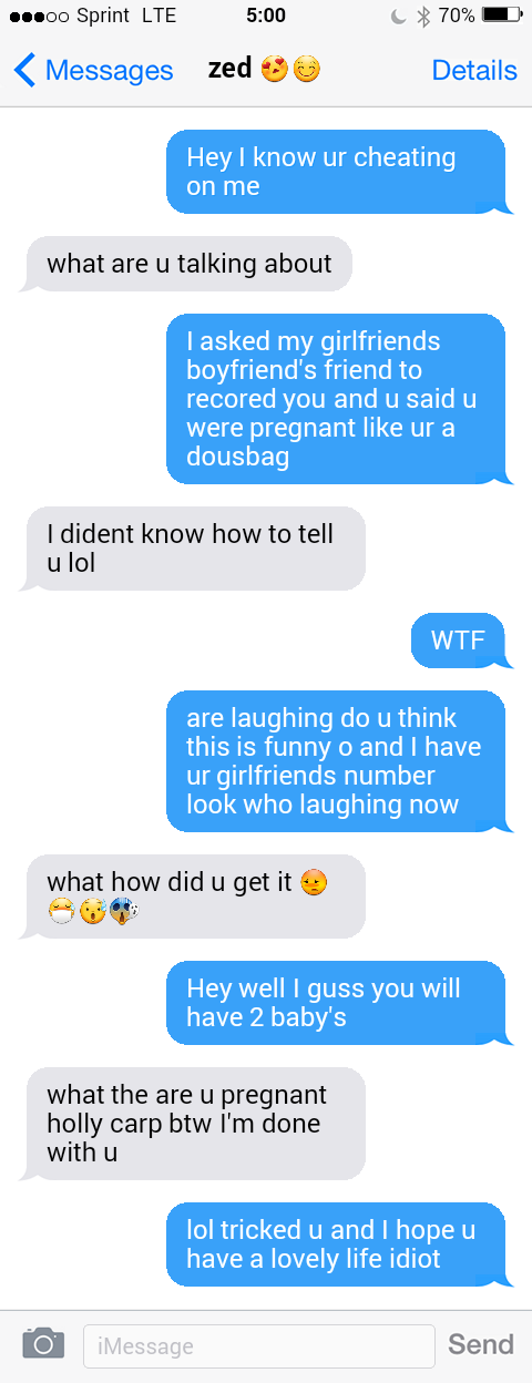 I asked my girlfriends boyfriend's friend to recored you and u said u were pregnant like ur a dousbag